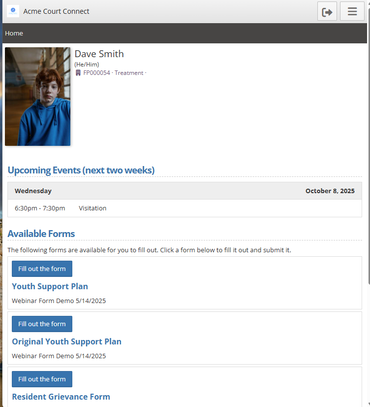 *Note* If a youth does have an email on file, they can access forms from an email invitation. This resource is not the full portal and will only allow them to see/complete the forms. For more information on client form invites please see the resource here.