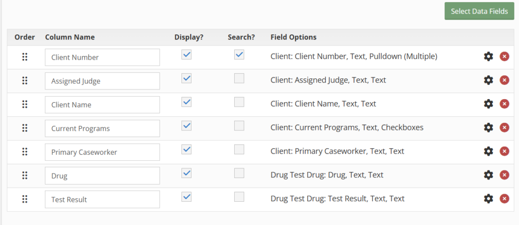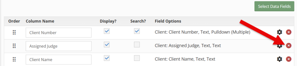 To delete a data field, select the “red” X.