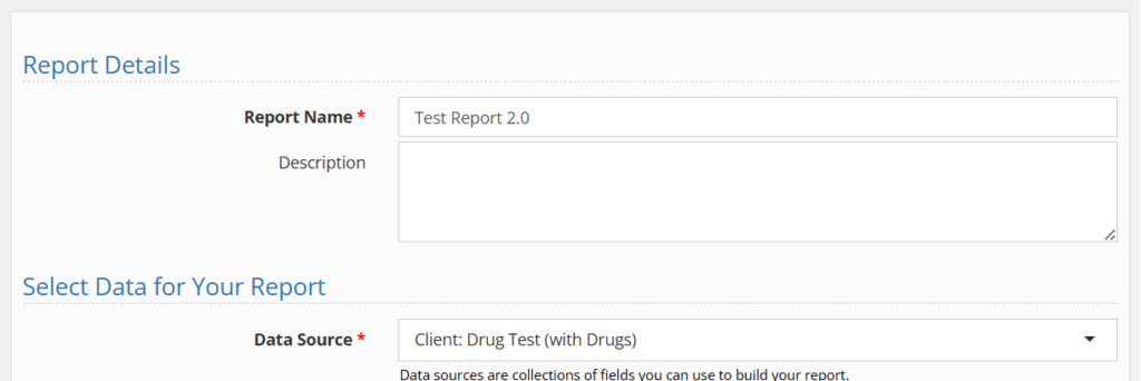 Name the report and choose the data source to suit your needs.