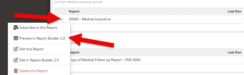 Select the carrot menu next to a report and choose “edit in report builder 2.0.”