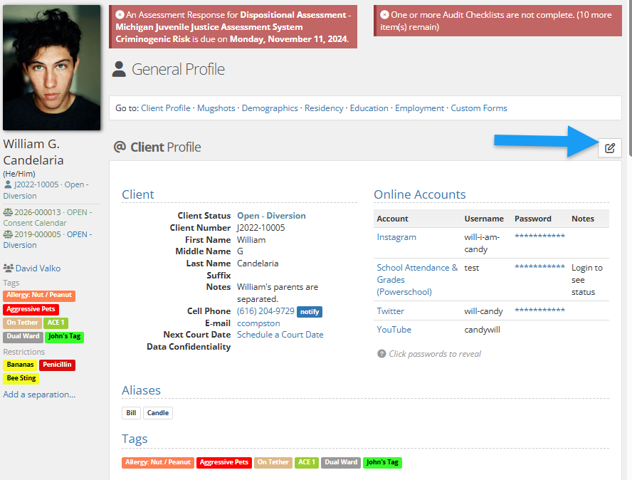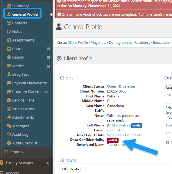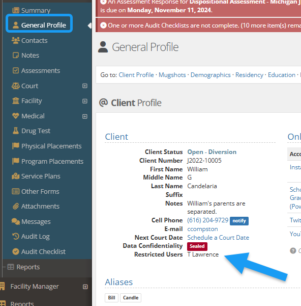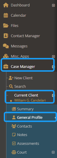 To access this setting, select the correct youth under “case manager” and choose “general profile.”