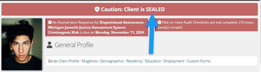 Under a Client Profile, a read “Sealed” or “Expunged” will be present.