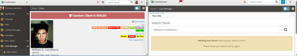 To navigate these moments, YouthCenter allows those with the correct permissions to set a youth to either Sealed, Expunged, or even restrict access for individual users.