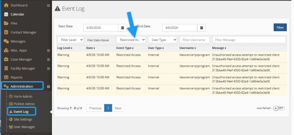 Under event logs, administrators will have a filter type of “restricted access” showing any unauthorized access for expunged/sealed/restricted accounts.