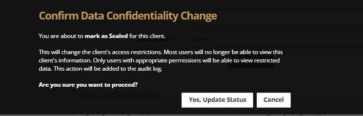 A banner confirming the confidentiality change will appear. If correct, choose “Yes, update status.”